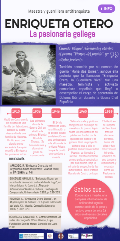 También conocida por su nombre de guerra "María das Dores", aunque ella prefería que la llamasen "Enriqueta Otero, la Guerrillera Viva", fue una maestra, feminista y activista comunista española que llegó a desempeñar el cargo de secretaria de Dolores Ibárruri durante la Guerra Civil Española.