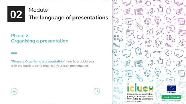 "Phase 2. Organising a presentation" aims to provide you with the basic tools to organise your own presentation.