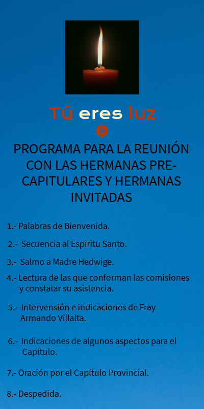 PROGRAMA PARA LA REUNIÓN CON LAS HERMANAS PRE-CAPITULARES Y HERMANAS INVITADAS