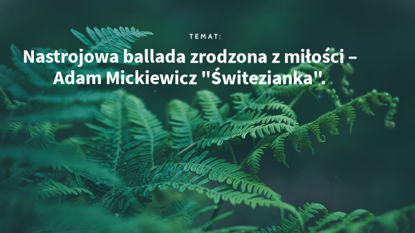 TEMAT: Niezwykła wyprawa w tajemniczy świat, czyli "Świtezianka" Adama Mickiewicza