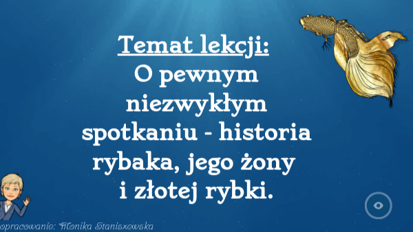 Temat lekcji: O pewnym niezwykłym spotkaniu - historia rybaka, jego żony i złotej rybki.