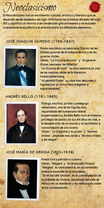 Poeta neoclásico ecuatoriano. Cantor de las últimas guerras de la independencia y de las guerras civiles.Obras: "La Victoria de Junín" y "Al general Flores, vencedor de Miñarica" "La Victoria de Junín" su obra maestra, es una de las mejores obras de la literatura hispanoamericana. "Al general Flores" su obra mas depurada y lograda por su sonoridad, imágenes y espontaneidad.