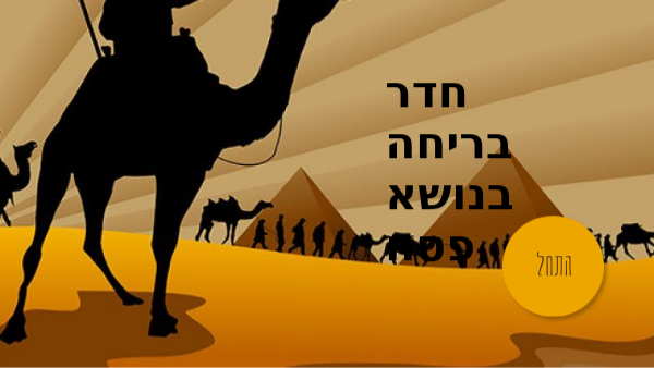 בזמן ההכנות ליציאת מצרים, ארזתם את שמלותיכם, בגדיכם ואת החפצים השונים, ואפילו הספקתם להכין מצות. למרבה הצער, התברר שהמצריים נעלו אתכם בתוך הבית כדי שלא תצליחו להצטרף לשאר בני ישראל אל המסע לארץ ישראלבכדי להצליח ולפרוץ את הדלתות הנעולות עליכם לענות על השאלות, לפתור את החידות, ולהתגבר על כל הקשיים . אתם חייבים לעמוד במשימה ולהצטרף לשאר בני ישראל במסעם ! לרשותכם 45 דקות (אך אנחנו בטוחים שתצליחו אפילו בפחות) שימו לב לכל תשובה שאתם עונים ותרשמו אותה לפניכם, זה יעזור לכם במעבר בין החדרים ! בהצלחה