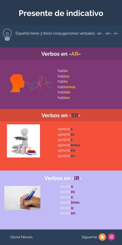 Español tiene 3 (tres) conjugaciones verbales: -ar-, -er-, -ir-.