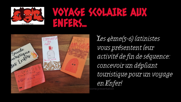 Les 4ème(5-6) latinistes vous présentent leur activité de fin de séquence: concevoir un dépliant touristique pour un voyage en Enfer!