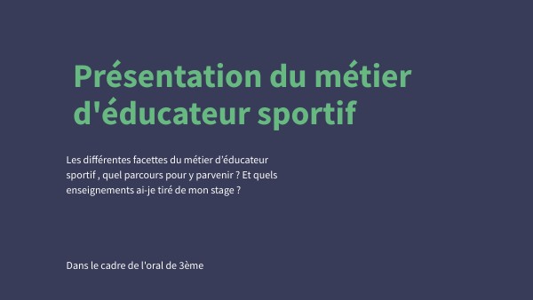 Les différentes facettes du métier d’éducateur sportif , quel parcours pour y parvenir ? Et quels enseignements ai-je tiré de mon stage ? Dans le cadre de l'oral de 3ème