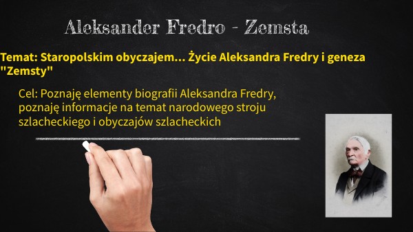 Cel: Poznaję elementy biografii Aleksandra Fredry, poznaję informacje na temat narodowego stroju szlacheckiego i obyczajów szlacheckich
