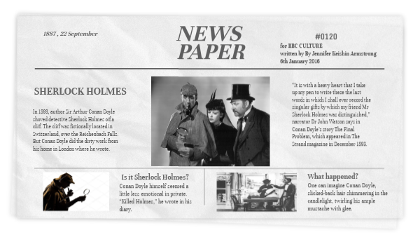 “It is with a heavy heart that I take up my pen to write these the last words in which I shall ever record the singular gifts by which my friend Mr Sherlock Holmes was distinguished,” narrator Dr John Watson says in Conan Doyle’s story The Final Problem, which appeared in The Strand magazine in December 1893.