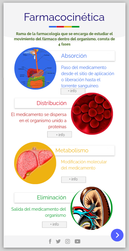 Rama de la farmacología que se encarga de estudiar el movimiento del fármaco dentro del organismo, consta de 4 fases