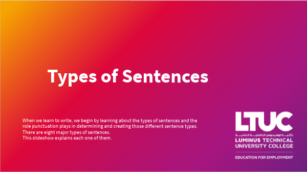 When we learn to write, we begin by learning about the types of sentences and the role punctuation plays in determining and creating those different sentence types. There are eight major types of sentences. This slideshow explains each one of them.