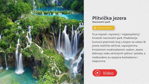 To je najveći, najstariji i najposjećeniji hrvatski nacionalni park. Predstavlja šumovit planinski kraj u kojem se nalazi 16 jezera različite veličine, ispunjenima kristalnom modrozelenom vodom. Jezera dobivaju vodu od brojnih rječica i potoka, a međusobno su spojena kaskadama i slapovima.