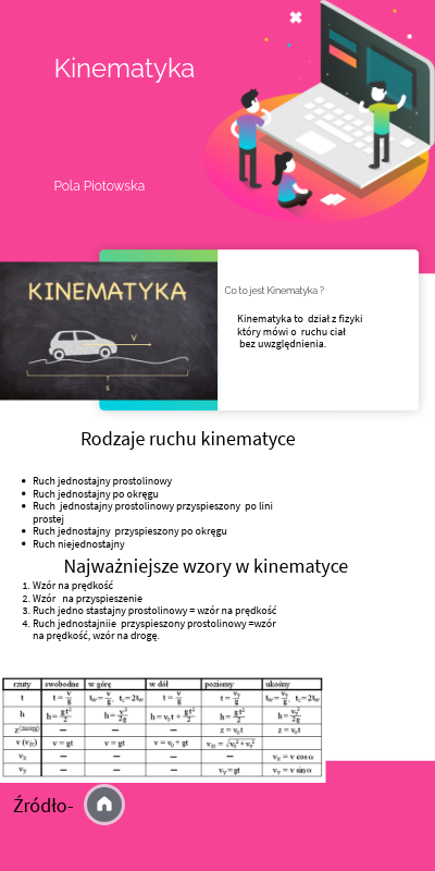 Kinematyka to dział z fizyki który mówi o ruchu ciał bez uwzględnienia.