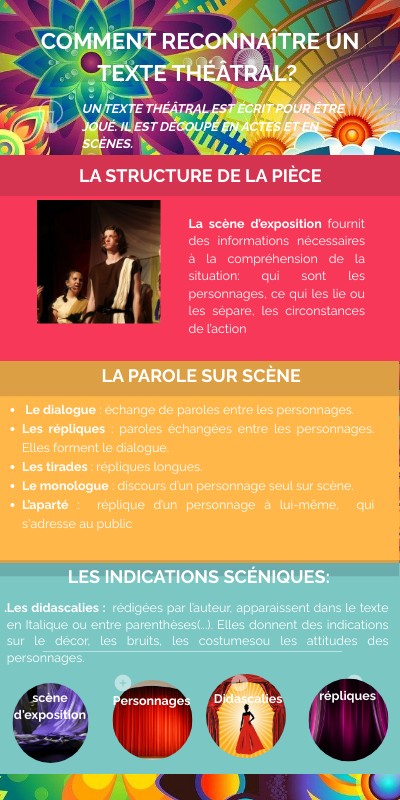 UN TEXTE THÉÂTRAL EST ÉCRIT POUR ÊTRE JOUÉ. IL EST DÉCOUPÉ EN ACTES ET EN SCÈNES.
