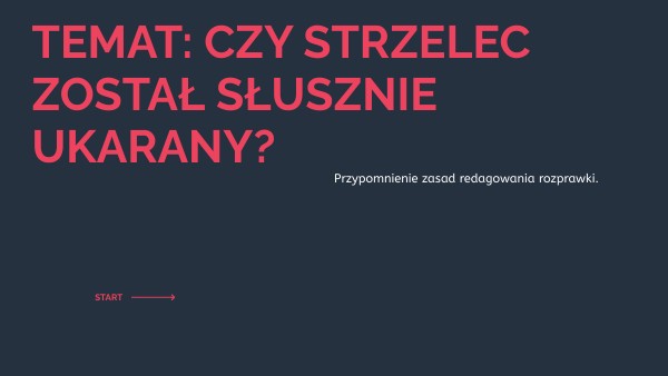 - dłuższa forma wypowiedzi;- cel- postawienie tezy i poparcie jej odpowiednimi argumentami; - argument- powód, powinien być poparty przykładem; WAŻNE- JEŚLI PISZESZ ROZPRAWKĘ W OPARCIU O TEKST LITERACKI, ZAWSZE WPROWADZAJ ELEMENTY, KTÓRE UDOWODNIĄ ZNAJOMOŚĆ TREŚCI LEKTURY; - trójdzielna kompozycja- pamiętaj, proszę, o akapitach;