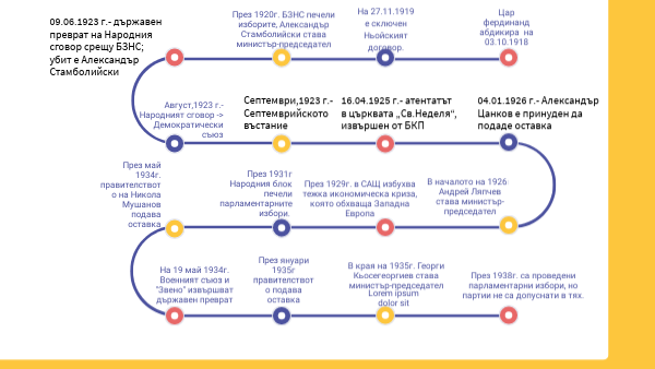 09.06.1923 г.- държавен преврат на Народния сговор срещу БЗНС; убит е Александър Стамболийски
