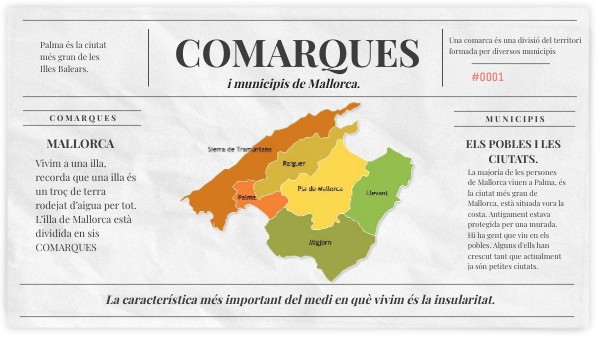 Vivim a una illa, recorda que una illa és un troç de terra rodejat d’aigua per tot. L’illa de Mallorca està dividida en sis COMARQUES