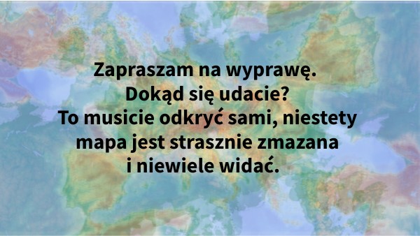 Zapraszam na wyprawę. Dokąd się udacie? To musicie odkryć sami, niestety mapa jest strasznie zmazana i niewiele widać.