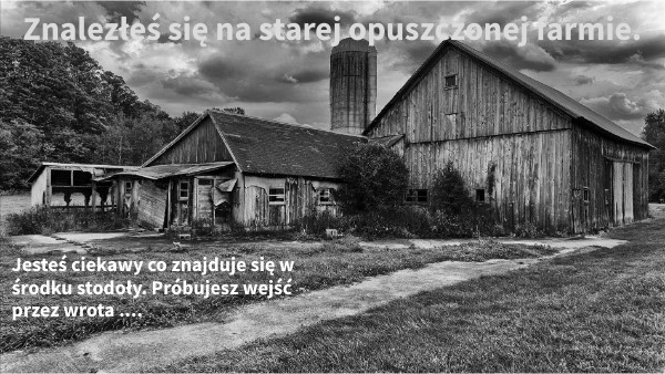 Jesteś ciekawy co znajduje się w środku stodoły. Próbujesz wejść przez wrota ....