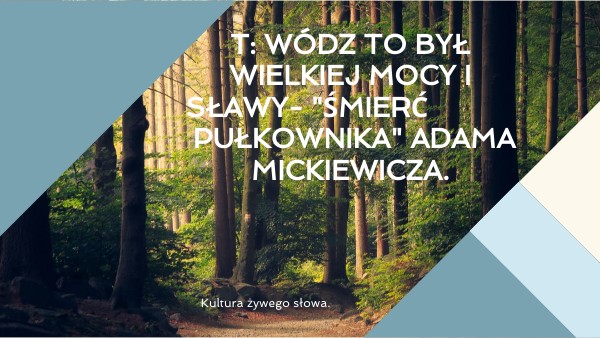 T: Wódz to był wielkiej mocy i sławy- "Śmierć Pułkownika" adama mickiewicza.