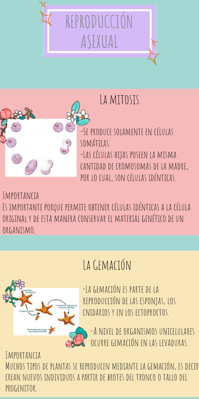-Se produce solamente en células somáticas. -Las células hijas poseen la misma cantidad de cromosomas de la madre, por lo cual, son células idénticas.
