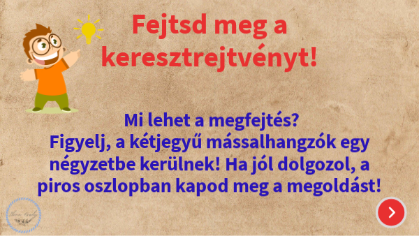 Mi lehet a megfejtés? Figyelj, a kétjegyű mássalhangzók egy négyzetbe kerülnek! Ha jól dolgozol, a piros oszlopban kapod meg a megoldást!