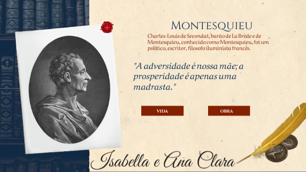 Montesquieu escreveu vários livros durante sua vida, mas o mais importante foi o “ Espírito das leis” citado antriormente.