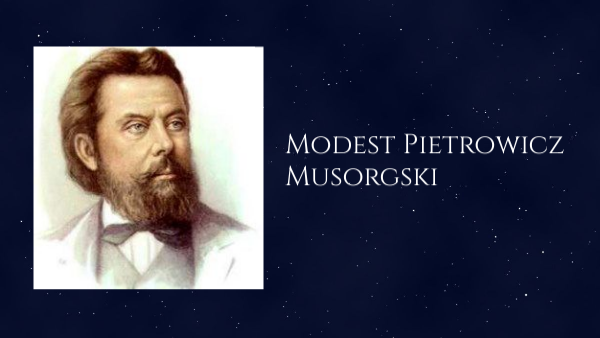 Modest Pietrowicz Musorgski- ur. 9 marca 1839 w Karewie, zm. 16 marca 1881 w Sankt Petersburgu– rosyjski kompozytor.