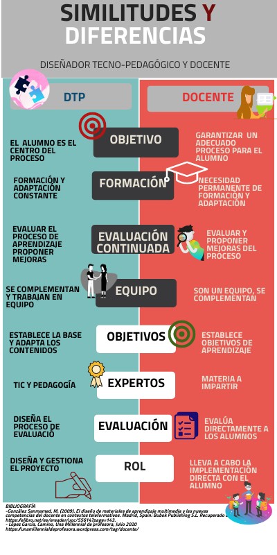 BIBLIOGRAFÍA -González Sanmamed, M. (2009). El diseño de materiales de aprendizaje multimedia y las nuevas competencias del docente en contextos teleformativos. Madrid, Spain: Bubok Publishing S.L. Recuperado de https://elibro.net/es/ereader/uoc/55614?page=143. - López García, Camino, Una Millennial de profesora, Julio 2020 https://unamillennialdeprofesora.wordpress.com/tag/docente/