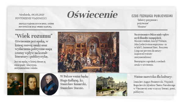 Oświecenie jest epoką, w której rozwój nauki oraz wydarzenia polityczne mają istotny wpływ na kształt literatury i publicystykę.