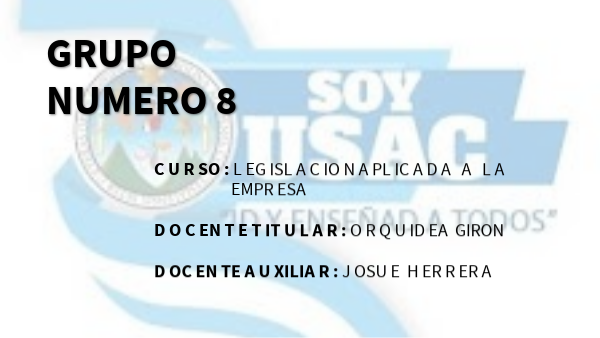 C U R SO : L EG ISL A C IO N A PL IC A D A A L A EMPR ESA D O C EN T E T IT U L A R : O R Q U ID EA GIRON D OC EN TE A U XILIA R : J OSU E H ER R ER A
