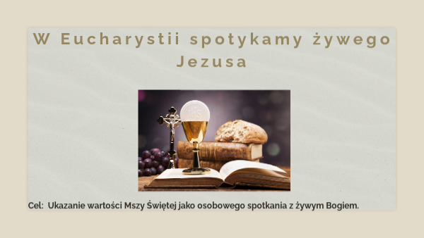 Cel: Ukazanie wartości Mszy Świętej jako osobowego spotkania z żywym Bogiem.