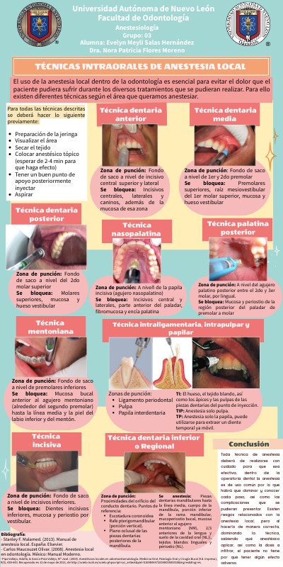 Bibliografía: - Stanley F. Malamed. (2013). Manual de anestesia local. España: Elsevier. - Carlos Maucouzet Olivar. (2008). Anestesia local en odontología. México: Manual Moderno.