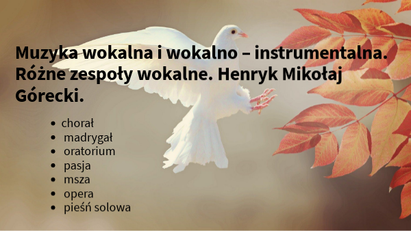 Muzyka wokalna i wokalno – instrumentalna. Różne zespoły wokalne. Henryk Mikołaj Górecki.