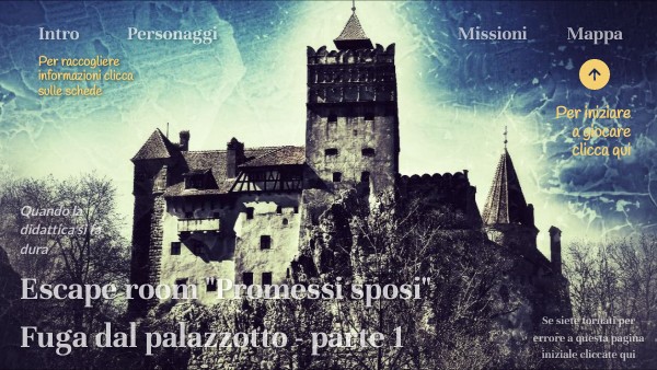 Il vostro insegnante di italiano, stanco per il fatto che nessuno studi, decide di affidarvi alle terribili cure di don Rodrigo.Venite quindi crudelmente incarcerati nelle segrete del suo palazzotto.Solo chi avrà superato delle prove pericolose e difficili, dando prova di aver studiato con attenzione l'opera di Manzoni potrà trovare il codice segreto per lasciare i terribili sotterranei. Vi resta poco tempo prima che arrivino i bravi e vi costringano a fare i riassunti che devono fare per la loro scuola serale.