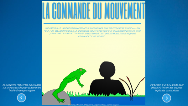 Une grenouille vient de voir un prédateur s’approcher. Elle est effrayée et bondit au loin pour fuir. Cela signifie que si la grenouille est effrayée (ses yeux grandissent de peur), c’est qu’elle voit la silhouette arriver. Si elle bondit c’est que ses muscles ont reçu une commande de mouvement.