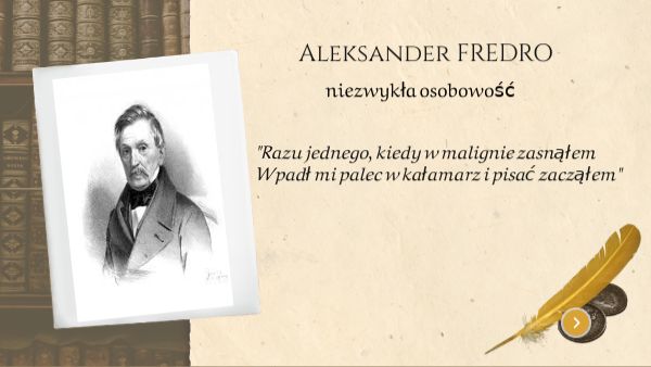 W wieku szesnastu lat Fredro wstępuje do armii Księstwa Warszawskiego, by trzy lata później wziać udział w nieudanym przedsięwzięciu Napoleona, jego wyprawie na Moskwę (1812 rok). Co ważne, ta "druga wojna polska", jak nazwał tę operację Napoleon, zakończyła się likwidacją Księstwa Warszawskiego, abdykacją Napoleona. Młody Fredro dostał się do niewoli, gdzie zachorował na tyfus. Udało mu się uciec. W 1815 roku pisarz powrócił do rodzinnego domu. Jak myślisz, jak czuł się młody Fredro, który wierząc w ideały wolności, równości, powrócił z wojny, wiedząc o śmierci wielu rodaków i klęsce wodza?