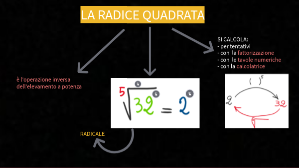 PER TANTO LA RADICE DI UN NUMERO è QUEL NUMERO CHE BISOGNA ELEVARE ALL'INDICE DEL RADICALE PER OTTENERE IL RADICANDO