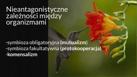 - Dzięki zależnościom nieantagonistycznym, organizmy skuteczniej unikają zagrożeń oraz zdobywają pożywienie. Zwiększają się zatem szanse przeżycia.