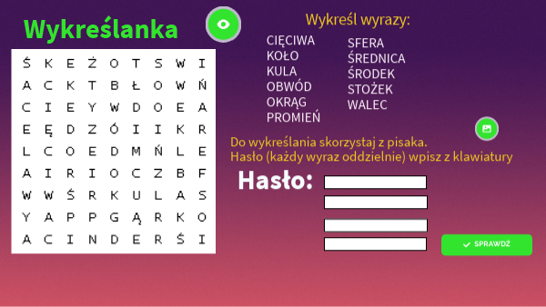 Do wykreślania skorzystaj z pisaka. Hasło (każdy wyraz oddzielnie) wpisz z klawiatury