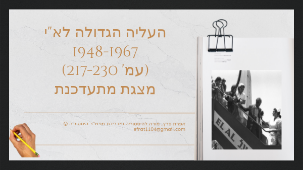 העליה הגדולה לא"י 1948-1967 (עמ' 217-230) מצגת מתעדכנת