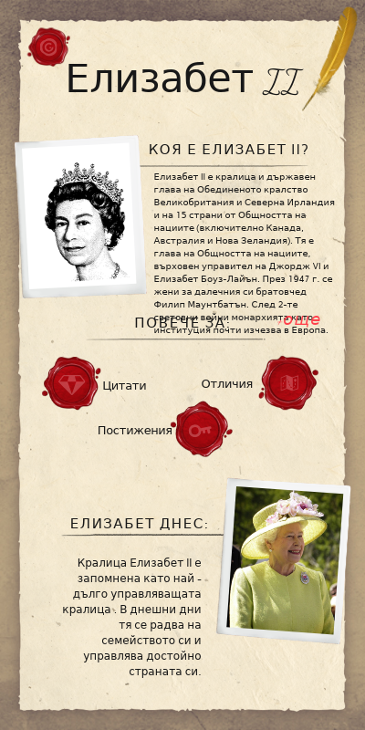 Кралица Елизабет II е запомнена като най - дълго управляващата кралица . В днешни дни тя се радва на семейството си и управлява достойно страната си.