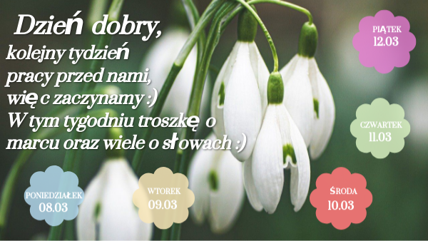kolejny tydzień pracy przed nami, więc zaczynamy :) W tym tygodniu troszkę o marcu oraz wiele o słowach :)