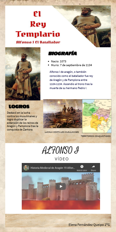 Alfonso I de aragón, o también conocido como el batallador fue rey de Aragón y de Pamplona entre 1104-1134. Ascendio al trono tras la muerte de su hermano Pedro I.
