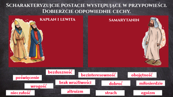 Scharakteryzujcie postacie występujące w przypowieści. Dobierzcie odpowiednie cechy.