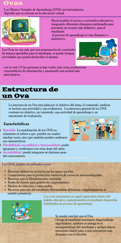 Los ovas manitienen un papel importante dentro del ámbito educativo, perimitiendole al estudiante desarrollar habilidades en proceso de aprendizaje.