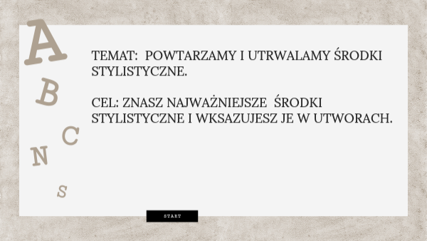 Temat: pOWTARZAMY I UTRWALAMY ŚRODKI STYLISTYCZNE. CEL: ZNASZ NAJWAŻNIEJSZE ŚRODKI STYLISTYCZNE I WKSAZUJESZ JE W UTWORACH.