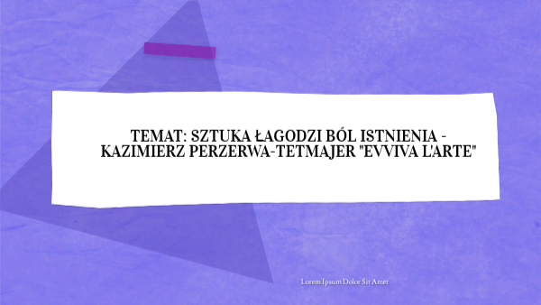 temat: Sztuka łagodzi ból istnienia - Kazimierz perzerwa-tetmajer "Evviva l'arte"