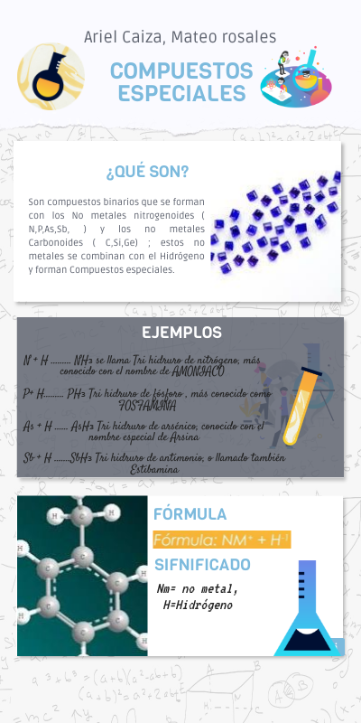 Son compuestos binarios que se forman con los No metales nitrogenoides ( N,P,As,Sb, ) y los no metales Carbonoides ( C,Si,Ge) ; estos no metales se combinan con el Hidrógeno y forman Compuestos especiales.