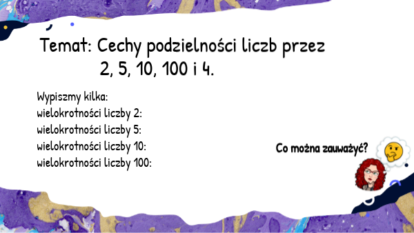 Temat: Cechy podzielności liczb przez 2, 5, 10, 100 i 4.