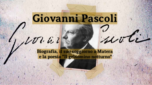 In seguito alla laurea, Giovanni Pascoli riuscì ad ottenere una cattedra al liceo E. Duni a Matera grazie al suo maestro Giosuè Carducci nel biennio 1882-1884. Arrivò in città nella notte tra il 6 e il 7 ottobre, durante un temporale e descrisse i paesaggi che vide durante il viaggio di una "sinistra bellezza". Il primo anno di insegnamento fu per lui traumatico: Matera all' epoca era un paesino molto piccolo, povero e di soli contadini; la cultura era infatti per pochissimi ed egli stesso scrive, riguardo la città: "la cultura nel migliore dei casi era un lusso e, nel peggiore, un’arma di sopraffazione nelle mani delle classi agiate”